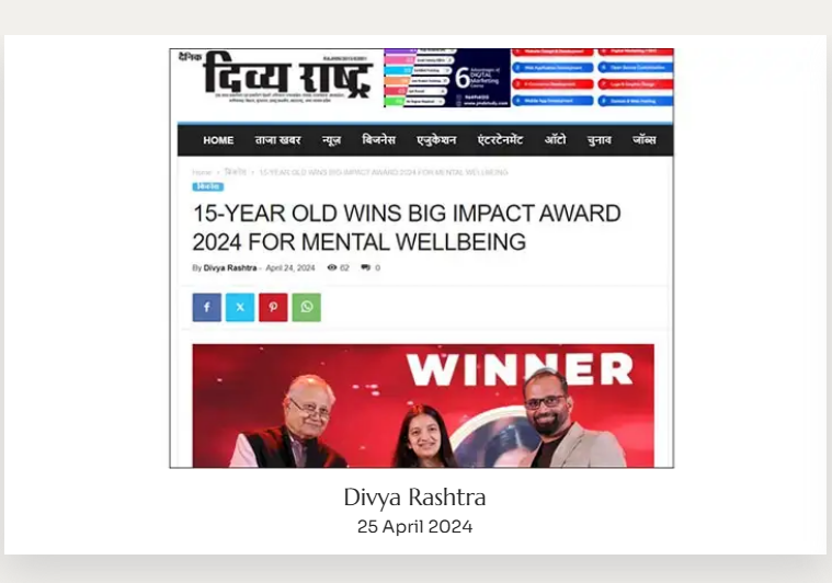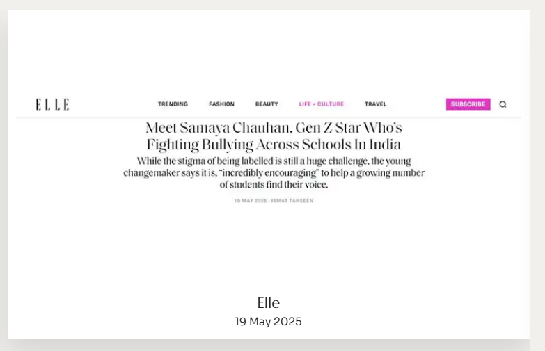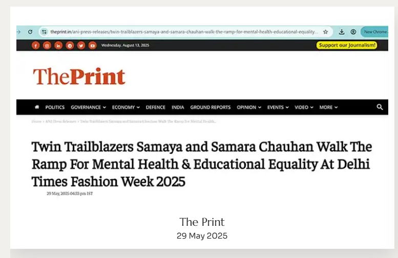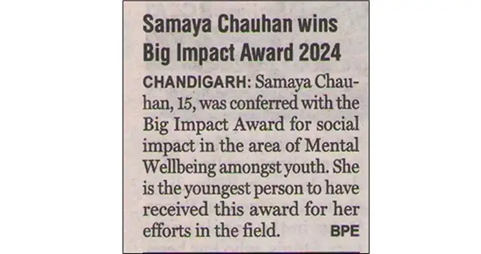 In addition to schools, Samaya and her team partnered with Blind Relief Associations and Old Age homes, extending their support to vulnerable groups, listening to their stories, and offering comfort through change. She has since collaborated with organizations to give youth the tools, resources, and platform to actively engage in policymaking, advocacy, and transformative action, particularly in areas of mental health, girl child empowerment, senior citizen welfare, cybersafety, space technology, and climate change.